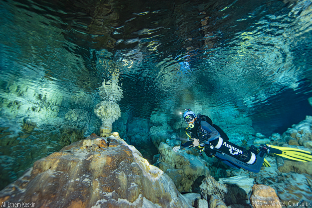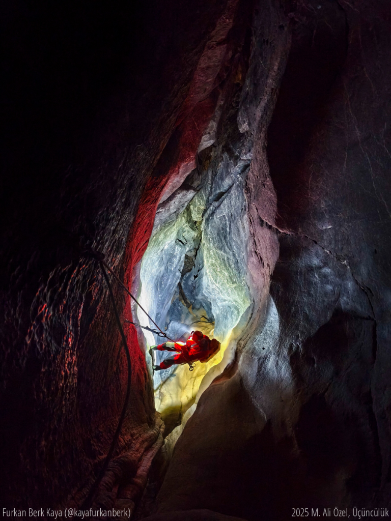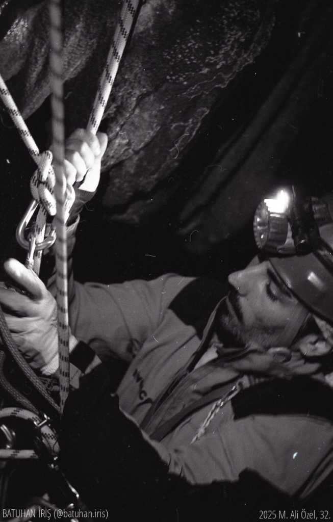 “İZMAD’ın ilk Kurcuk Düdeni faaliyetinde, ipten süzülerek mağaraya indik. Aşağı vardığımızda karşımızda öyle bir manzara vardı ki, sanki National Geographic setine yanlışlıkla dalmış gibiydik. Mağaranın dibine yerleştirilen LED ışık yukarıdan süzülen gün ışığıyla birleşince ortaya tam bir ‘yeraltı şovu çıkmıştı. Toz zerrecikleri bile ışığın içinde ağır çekimde dans ediyordu. Işığın, sessizliğin ve biraz da deliliğin birleştiği o kare.“