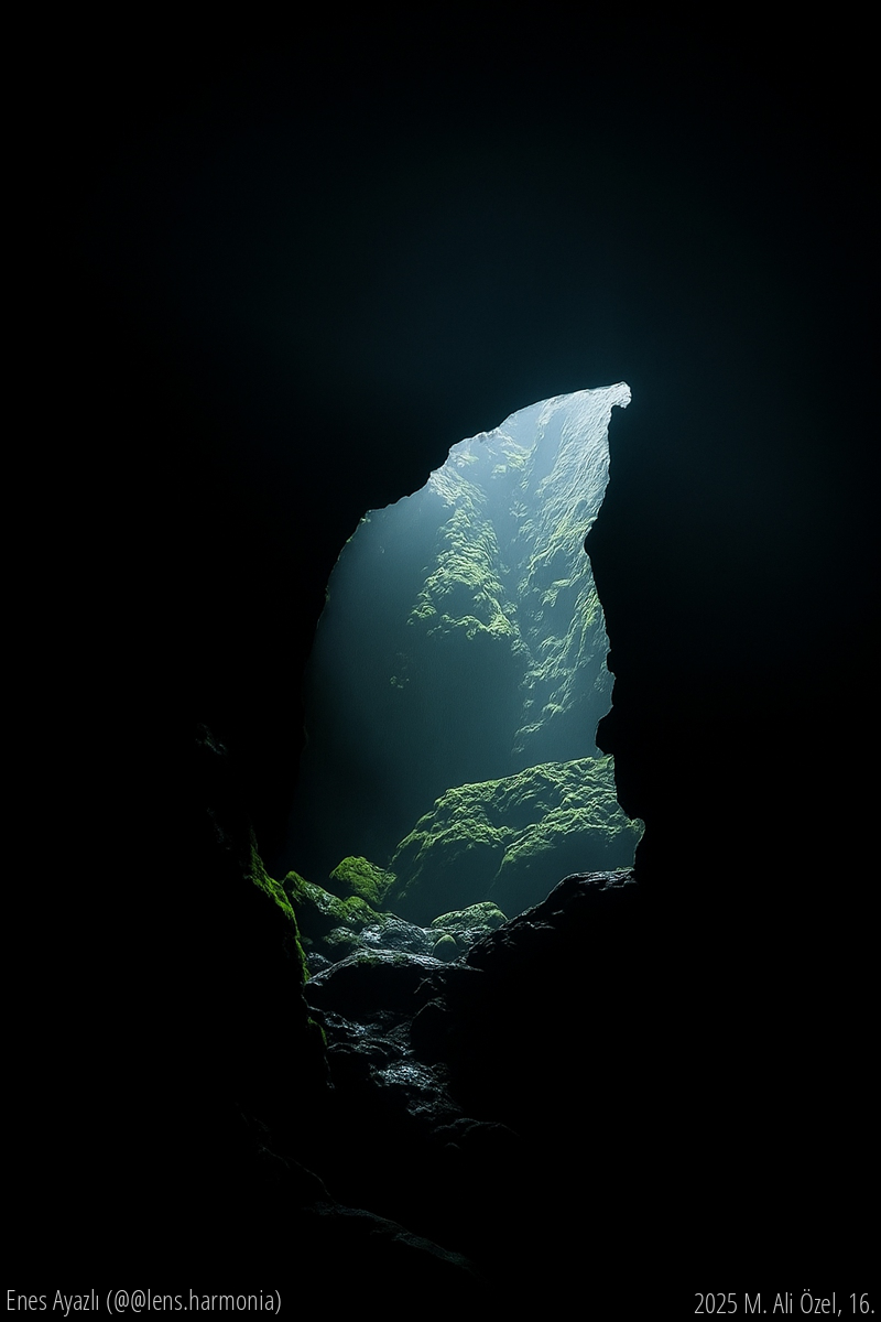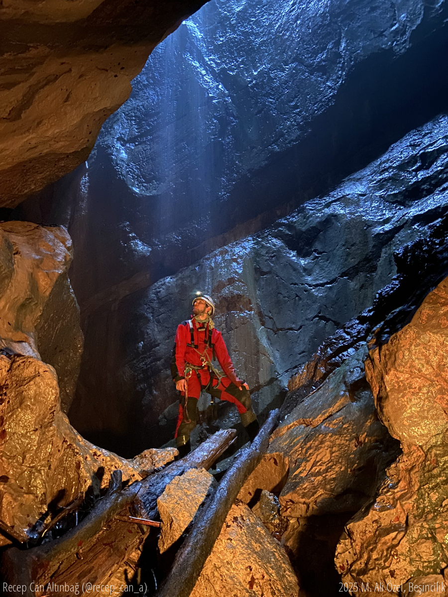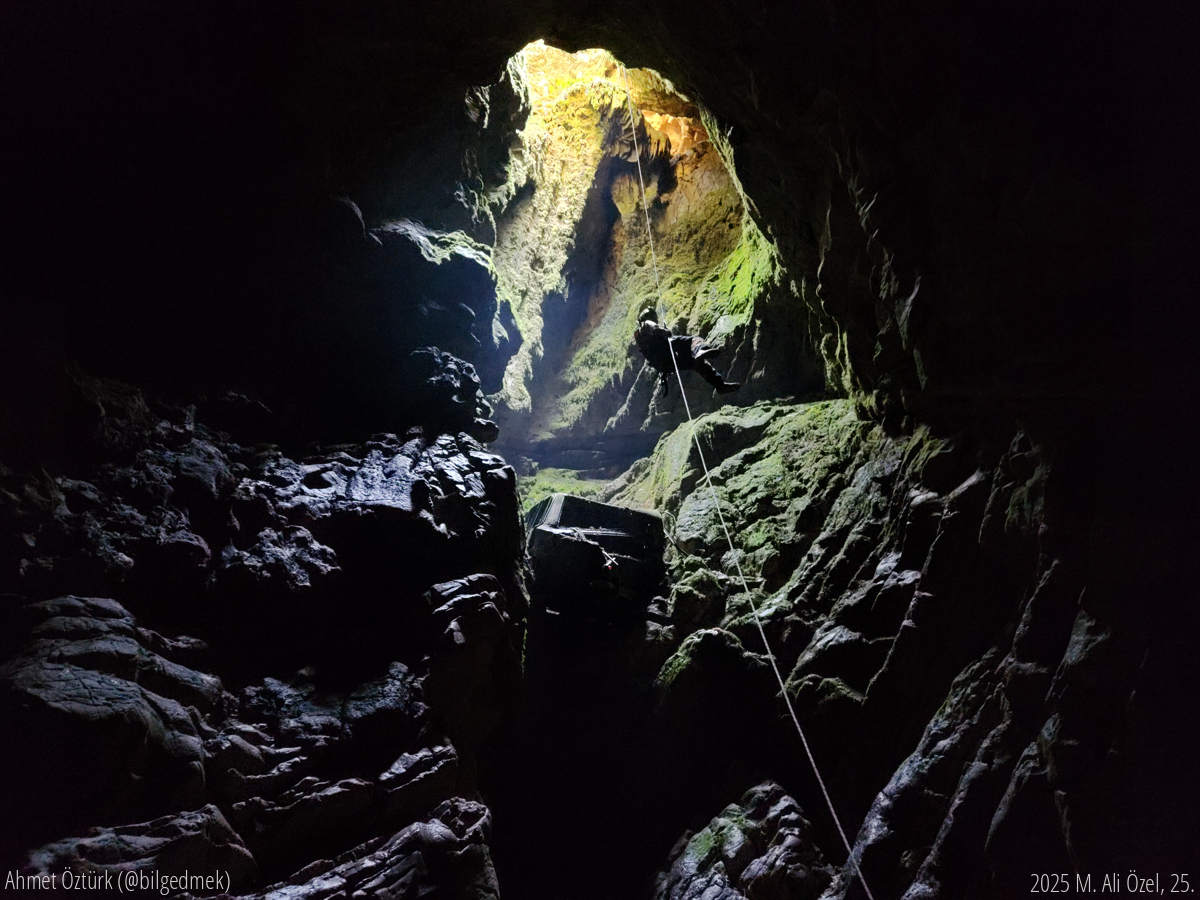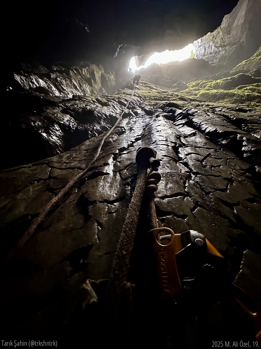 “İZMAD’ın ilk Kurcuk Düdeni faaliyetinde, ipten süzülerek mağaraya indik. Aşağı vardığımızda karşımızda öyle bir manzara vardı ki, sanki National Geographic setine yanlışlıkla dalmış gibiydik. Mağaranın dibine yerleştirilen LED ışık yukarıdan süzülen gün ışığıyla birleşince ortaya tam bir ‘yeraltı şovu çıkmıştı. Toz zerrecikleri bile ışığın içinde ağır çekimde dans ediyordu. Işığın, sessizliğin ve biraz da deliliğin birleştiği o kare.“